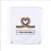 Made from soft 210T polyester material in white, this bag features reinforced leatherette corners, metal rings, and a white drawstring. Personalise your bag with one of our 3 eye-catching designs: Rainbow, Cloud, or Heart and create the perfect bag for you!